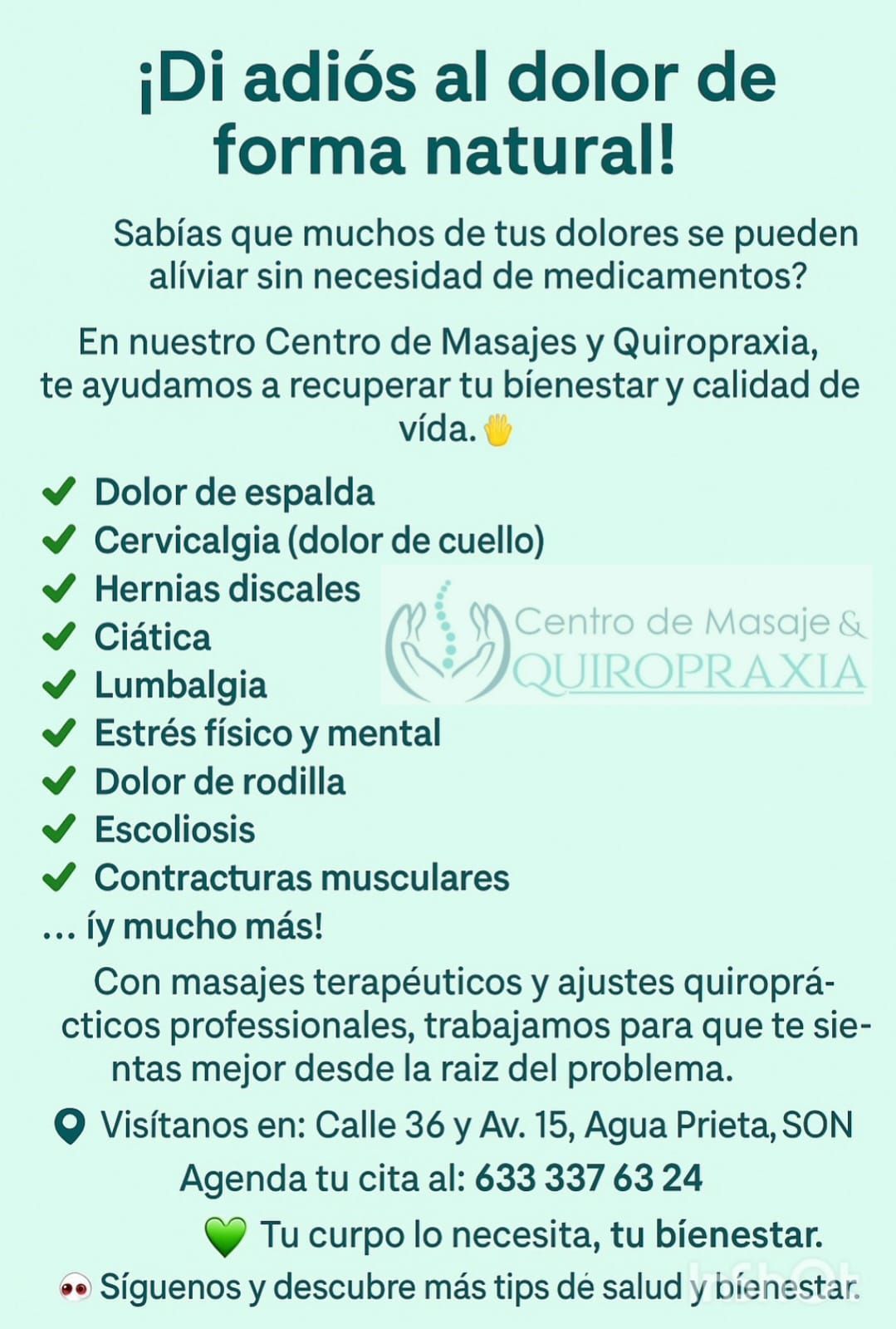 En Centro de Masaje y Quiropraxia ofrecemos soluciones profesionales para el alivio del dolor, la relajación profunda y la recuperación del movimiento corporal a través de terapias manuales, aparatología y técnicas de rehabilitación avanzadas. Con 18 años de experiencia en el cuidado de la salud física, brindamos atención personalizada y resultados reales en todo Sonora.